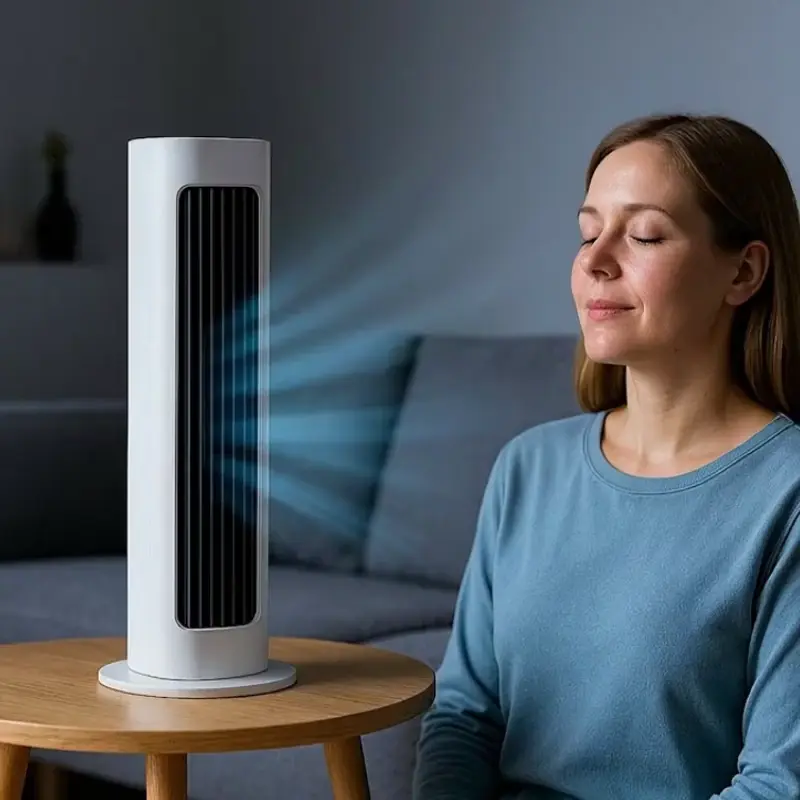 BreezeMate keeps our bedroom perfectly cool and I can run it all night without worrying. I love how safe it is for my toddler and there's finally no annoying fan noise to disrupt our sleep. The design fits seamlessly into our space and really makes summer nights easier.
